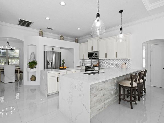 Every inch of this beautifully updated 4 BR / 2 BA/ 3,085-LSF home perfectly blends elegance, comfort & functionality. Each detail feels intentional - from the luxurious primary retreat to the open-concept kitchen that flows effortlessly into the family and dining areas. The home's cohesive design continues outdoors with 2172 SF of sparkling resort-style pool, travertine paver decking, and a tiki retreat - creating a harmonious extension of living space ideal for entertaining & relaxation. This versatile floor plan also includes formal living & dining rooms, den, and Florida room spacious, inviting, and designed for everyday living. Other features include Calacatta-style quartz waterfall island, coffered ceilings, crown molding, sleek porcelain tile throughout, and so much more! Living Spaces: