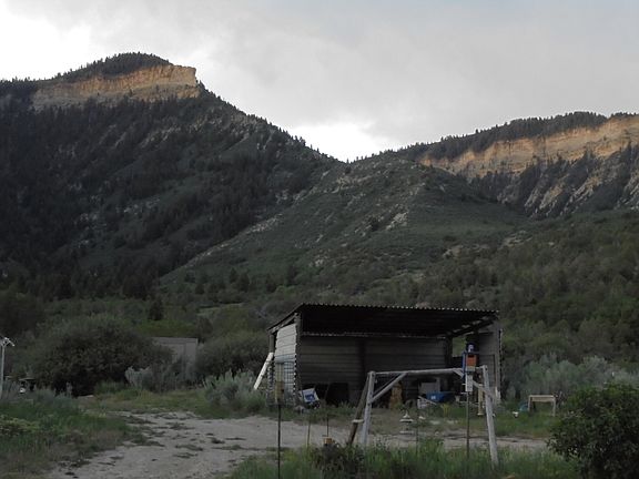 92 acres offering dramatic mountain views, 50 lush acres of irrigated hay fields and Roan Creek running through! Secluded property features a comfortable 3BR/2BA doublewide manufactured home and right next door a 720-sq. ft. wood frame ranch office/guesthouse. Both structures are well-insulated and come with efficient free-standing woodstoves. They sit near the base of 8,200-ft. Kimball Mountain and enjoy sweeping views across the fields and valley to the mountains beyond. A well-equipped camp on the banks of Roan Creek has served as a summer home for countless youngsters and their counselors over the years. It includes a meeting hall with fully-functional kitchen, several cabins and shower houses, mature shade trees, corral and basketball court. Wildlife abounds on this property, which accesses via a pedestrian/horse trail the BLM land bordering to the south.