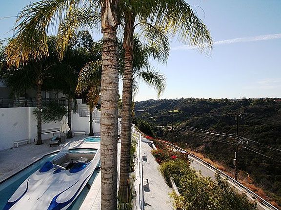 A very hip Viceroy Hotel vibe in this home; located at Mulholland and Benedict Canyon. This gated 2 story contemporary has loads of surprises. Thru-entry is a motorcycle floating on a pond, a vision of white unfolds into large open living/entertaining spaces. Grand large kitchen overlooks pool with floating boat and patios with out-door bbq entertaining, outside bar, 4 beds, master w/ dual baths, private hot tub room, tanning bed, theater- it's all new. This home makes quite a playful statement. (Internet 5398579)