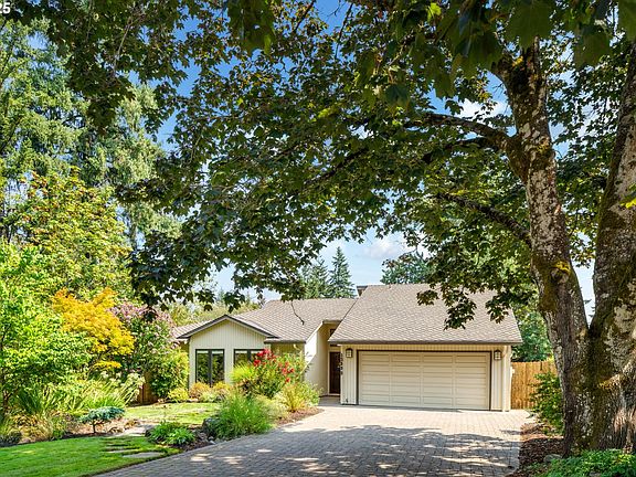 Nestled on a serene .39-acre lot in Tigard, this beautifully maintained one-level home offers 3 bedrooms, 2 bathrooms, and a thoughtful blend of comfort and character. The remodeled kitchen features a cooktop island and eating nook, opening into the spacious great room with dining area, vaulted ceilings, and a cozy gas fireplace. A light-filled sunroom with walls of windows invites year-round enjoyment, while the expansive deck overlooks lush gardens, fruit trees, and peaceful territorial views. The primary suite impresses with vaulted, beamed ceilings and direct access to the outdoors. Additional highlights include solar panels, a presidential roof, and a charming cobblestone driveway. Backing to a greenbelt for privacy, this home combines natural beauty with everyday convenience. An exceptional retreat right in the heart of Tigard.