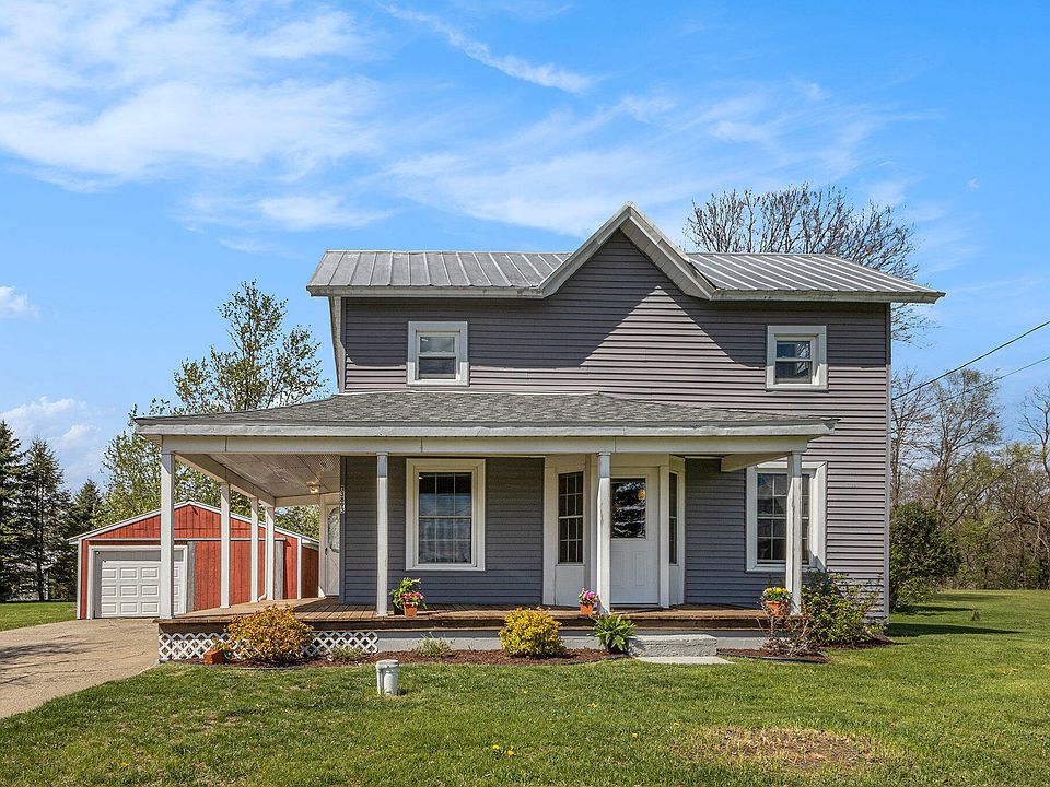 Gorgeous 3 bed 1 bath farmhouse on almost 1 acre of land! Highlights include spacious lot, fruit trees on property, and charming wrap around porch. Updated kitchen with tile backsplash and stainless steel appliances. Good sized bedrooms with newer carpet, paint, and lots of natural light. New furnace, A/C, windows, and well in 2022. Enjoy watching nature or catch the sunset while rocking on your wrap around porch. Property is lined with beautiful apple, pear, and cherry trees. Ideal central location that's only 15 minutes from Caledonia, Middleville, or Hastings. Schedule your showing today! Open house 10:00am-noon on Saturday 5/3. Seller has directed listing broker to hold all offers until 12:00 noon Monday 5/5/25.