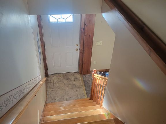 2 bedrooms and full bathroom on second floor. First floor includes 3rd bedroom, eat-in kitchen, laundry area, half bathroom, and living room.