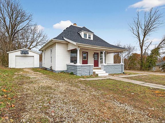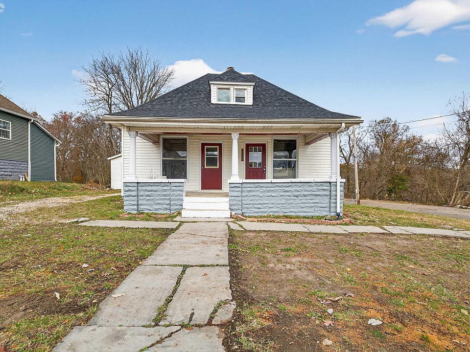 WELCOMING. BRIGHT. COMFORTABLE. Welcome to this charming FOUR bedroom, ONE bathroom home in a great location! Enjoy relaxing or entertaining on the covered front porch, perfect for spending time with friends and family. Step inside to find a spacious living room that flows seamlessly into the dining area conveniently located next to the kitchen, creating an open and inviting atmosphere. Right off the dining, you will find a spacious laundry room with lots of natural light. The main level offers two comfortable bedrooms with a full bath in between. Upstairs, you will find two additional spacious bedrooms, ideal for guests, an office, or extra living space. The unfinished basement provides plenty of storage and features outside-only access. Outside, you will appreciate the one-car detached garage and ample yard space for outdoor enjoyment. Some of the most recent updates include new roof, flooring, drywall, paint, and electric work. Utilities are provided by Duke, Centerpoint, and Bedford City Utilities. This delightful home offers the perfect blend of comfort, convenience, and character. Schedule your private showing today!