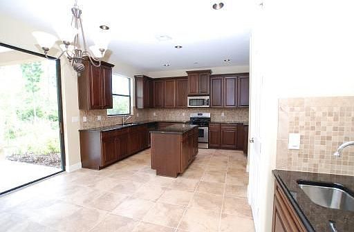 Gorgeous estate located in the stunning gated community of Riviera Bella. This spacious home has 4 bedrooms, 2 bathrooms and a half bath! The kitchen has lavish dark wood cabinets, solid granite counter-tops, an island with storage, and stainless steel appliances. Master Bedroom is over-sized, has a sitting area, plush carpet flooring, and a balcony with wooded view. Master bathroom has his/hers sinks, separate shower, and tub. Second floor has hardwood floors throughout hallway, and carpeted bedrooms. Beautiful and wide windows and arched ways put the finishing touches on this lavish home! Two car garage with driveway. Charming paved patio area with fire pit!