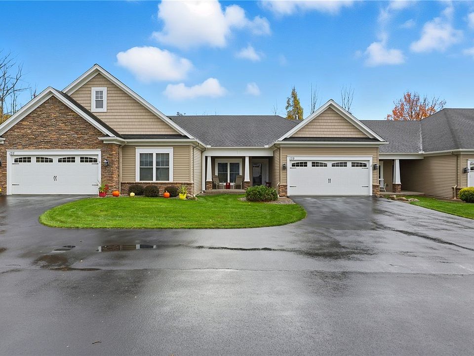 Welcome to first floor living at it's finest in this lovely townhome in Arbor Ridge! Built in 2012, this Pridemark townhouse has been well maintained. Step inside to gleaming hardwoods throughout the first floor living area. Enjoy your kitchen with exquisite cabinets, all stainless steel appliances, custom pantry, and breakfast bar with room for 4 stools. Relax in the living room with gas fireplace or enjoy your coffee on the back deck with composite decking. This townhome features ample storage too with an extra pantry/storage closet in the great room, a large coat closet in the foyer, another storage closet by the garage, and plenty of room in the first floor laundry room - with washer and utility sink included. Enjoy your generously sized primary bedroom with a large walk in closet and en suite bath. The other bedroom is located on the opposite side of the house for maximum privacy. And enjoy a second full bath. The basement features some built in shelving for storage and high ceilings. The HOA takes care of the lawn, snow removal, and exterior building maintenance and Arbor Ridge includes the Lodge - with a kitchen and exercise room that you can rent for a nominal fee for events. Conveniently located minutes from Wegmans, Target, and many restaurants. Open House Sunday 10/26 1-3pm. Delayed negotiations Thursday 10/30 at 4pm.