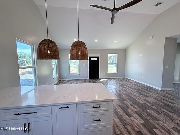 Nestled on nearly an acre, this 2BR/2BA home makes the most of its 1,098 sq ft with a smart, open layout. Soaring 9' ceilings throughout and a 14' vaulted ceiling across the living, kitchen, and dining areas create a bright, airy feel. The kitchen and baths feature custom cabinetry topped with quartz countertops for a clean, cohesive look. The primary suite offers double vanities and a beautifully tiled shower. Built with durable materials and designed for easy living, there's plenty of space outdoors for your projects, gardens, or future plans. Come see how effortlessly this home lives!