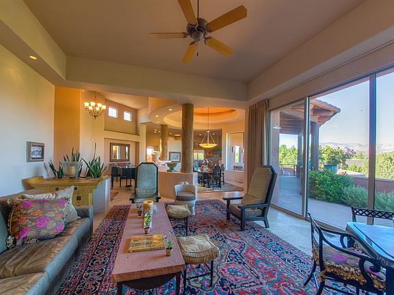 This custom Sante Fe style home delivers quality construction, attention to detail, full panoramic red rock views and an ideal location on almost an acre of prime Sedona AZ real estate. Enjoy a spacious foyer and open entertaining area that features 14 foot ceilings, butted glass & oversize sliders in the living & dining areas that show off the magnificent views, a gourmet kitchen with granite countertops, a commercial grade range & top-of-the-line appliances, polished travertine flooring, solid ash doors and an expansive covered outdoor patio with a pebble-tech spool that has some of the best Sedona red rock views. This single level home has a split floor plan with 3 bedrooms/3 bathrooms and a media/family room. It offers an exquisite owner's suite wi... (see supplement for full remarks) Brokered And Advertised By: Russ Lyon Sotheby's International Realty Listing Agent: Edward Pennington
