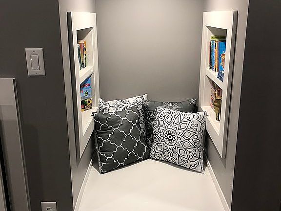 The finished lower level with custom built-ins offers the perfect space for a family room, gym, or home office. Outside, enjoy your expansive private yard surrounded by mature trees and nature trails ideal for entertaining or quiet relaxation.