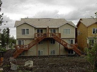 Duplex style home. Daylight basement w/large family room. First floor den has own deck. Living room has gas FP and additional deck. Large back yard. Easy access to bases and Glenn Highway.