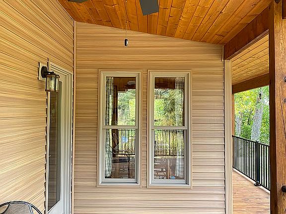 Beautiful 360 views of mountains and farmland await you from this 1,591 sq. ft., 3 bedroom, 2 bath home, situated on 9.3 acres. Home was built in 2011, is vinyl sided with a metal roof. Wrap around porch with a tongue and groove (T&G) pine ceiling and newly installed Westbury aluminum railing. Open concept living/kitchen area with a 11 1/2 ft. pitched ceiling. Dining area is surrounded by 7 windows. Oak hardwood floors throughout with T&G pine walls in the mudroom, living/kitchen area, and hallways. Drywall walls in bedrooms, bathrooms, closets, and laundry room. All ceilings, except in bathrooms and closets, which are drywall, are T&G pine. Vinyl floor covering in master bathroom and laundry room. Tile flooring in 2nd bathroom. Attic storage with stair step access.