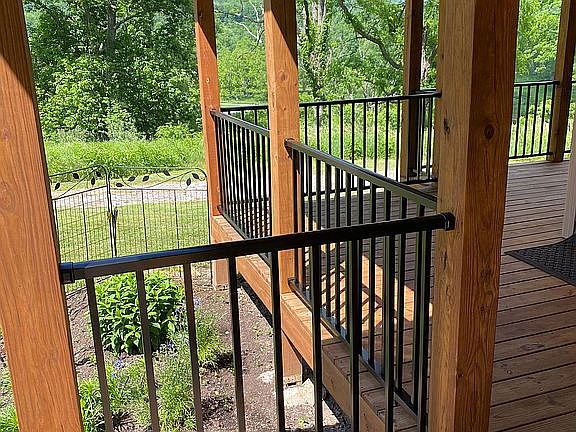 Home heats with an electric Trane heat pump and a Hearthstone soapstone wood burning stove is available. Chimney is triple-lined stainless steel. Interior woodstove pipe is telescopic double-lined pipe. Home is air conditioned. Anderson double hung windows. Home has a well and septic. Block foundation. Home sits atop a knoll, has a flat backyard and remaining acreage gently slopes to all property boundaries. Parcel was surveyed in 2010 and is recorded. Some fencing exists. Property has some marketable walnut trees. Most of the acreage is open. Private drive with deeded right of way.