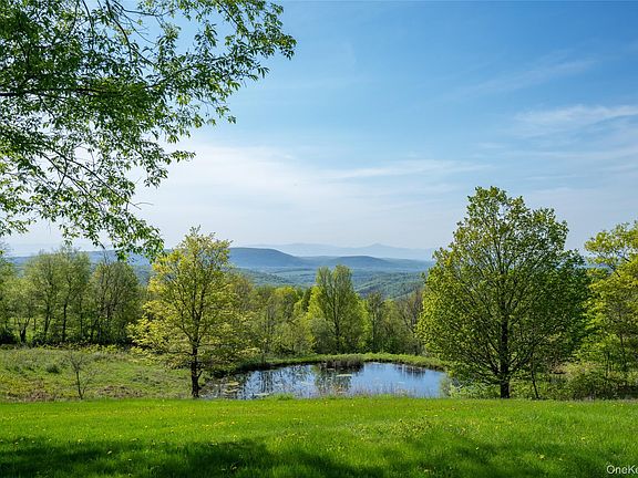 Dramatic Post and Beam Barn-Style Home with Observation Tower, Pond & Sweeping Catskill Views. Perched on a hilltop in a secluded Millerton setting, this one-of-a-kind home offers over 3,800 square feet of thoughtfully designed living space with panoramic Catskill Mountain views from every room. The main level features a soaring double-height living room with a double-sided fireplace shared with the open kitchen and dining area. Wide board floors and exposed beams highlight the home's rustic craftsmanship. Step out from the living room or primary suite onto a generous deck, perfect for sipping your morning coffee or dining al fresco as the sun sets over the hills. A guest half bath completes the main floor. Upstairs you will find a cozy guest bedroom, full bath, and a light-filled office. The walkout lower level adds even more versatility with a spacious family room featuring its own fireplace, a kitchenette, and two large ensuite bedrooms, each with French doors that open to the surrounding landscape. Additional highlights include an observation tower for panoramic viewing, a tranquil pond, and 12.5 acres of total privacy, yet just a short drive to the Metro North train for easy access to NYC. A rare and special offering in the Hudson Valley, combining space, style, and unforgettable natural beauty.