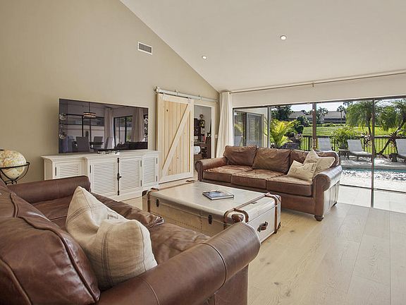 Minutes to the beach just two blocks away, or one block to your boat in the full service Bluffs marina. This is a one of a kind house in the Bluffs. A true 4 bedroom, 3 full bath open floorpan house with two full master bedrooms. This is on a huge corner preserve lot, so you can relax by the pool, and enjoy the great views and ocean breeze. This house just had a $250,000 full remodel by a professional designer. NO expense spared. All new electric and plumbing, 10 inch wide weathered oak floors throughout, Venato Marble island, kitchen, and master bath countertops. This house could be a Restoration Hardware show home. All RH lighting inside and out. RH guest and hall bath vanities, mirrors, fans and more. Custom kitchen includes a huge island workspace, hidden exhaust fan, and prep sink