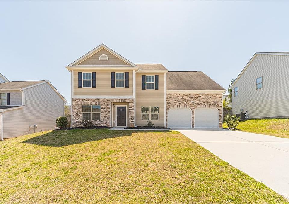 Welcome home to this stone accent beauty! This home is true traditional style with a formal dining room on one side of the entry and living/flex room on opposite side. The family room opens up to the kitchen with bright white cabinets, with appliances including electric stove and dishwasher, tile backsplash, island, large eat-in area and pantry. A half bath finishes the main level. Upstairs, the owners suite has a tray ceiling, large walk in closet, double sink vanity, garden tub and separate shower. Bedrooms 2, 3 & 4 are spacious with ample closets and share a full bath. Laundry room finishes the 2nd floor. Great outdoor space includes a patio and fenced in back yard.