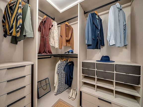 Two quiet, north-facing bedrooms, both equipped with large closets, provide daylight and privacy at the end of a gallery. Designed to delight, the primary suite includes a huge walk-in wardrobe and a stunning en-suite bathroom that evokes the carved walls of a quarry. The incredibly spacious, spa-like primary bathroom is finished in Travertino Silver Roman marble surrounding the walk-in rain shower and floating double vanity. The second bathroom similarly reflects luxury and sophistication.