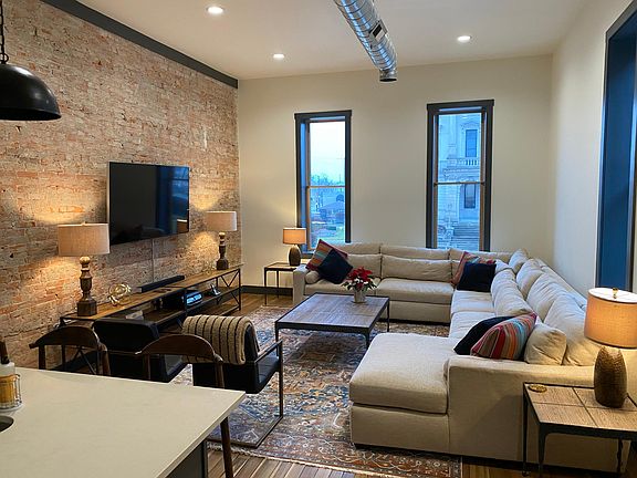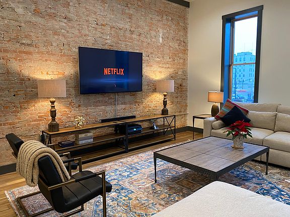 Luxury apartment in historic downtown Marion. This 150-year-old building was redeveloped in 2019 with modern design accents. As you reach the landing and gaze across the outstretched poplar floors, you are welcomed into a tranquil and relaxing experience. Grab a refreshment from the fully equipped kitchen, kick back on the plush sofa, and watch the game on the 70" 4K. Tenant is responsible for water, trash, sewage, electric, and cable.