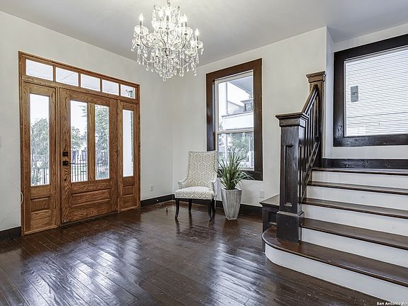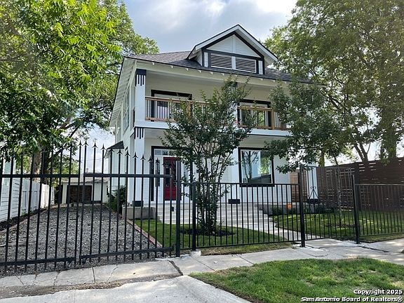 Amazing opportunity to own this Elegantly Restored 1914 Historic Beauty! Drive into your own wrought Iron gates and enjoy the pride of ownership of the most charming Home on the market near South-town, Riverwalk, and the Alamodome. Oversized front porch and balcony give this home that quintessential traditional look of a Historic past with today's Modern amenities. Upon entry you will be greeted by the grand open floor plan with high ceilings, tasteful updates and mostly original hardwood floors. The entire home boasts of natural light and offers the primary downstairs Master suite with spa like master bathroom with jetted tub and walk out rear deck access. Updated chef's kitchen includes feathered/textured granite countertops and stainless-steel appliances and large island perfect for entertaining. Upstairs you'll find three additional large bedrooms, maximized closet space throughout, Two door access walkout balcony with views of Downtown and large sitting area or Game room for today's modern lifestyle. Detached two car garage and Privacy fence. Energy efficiencies include tankless water heater and new roof, electrical and much more. Every weekend will feel like a Staycation being minutes away from the excitement of Downtown San Antonio such as, The Pearl, Blue Star, Friendly Spot, La Tuna, Rosario's, Hemisphere Park and so much more. Not to mention, hiking, walking and biking trails for miles and miles. Please see associated docs for list of updates.