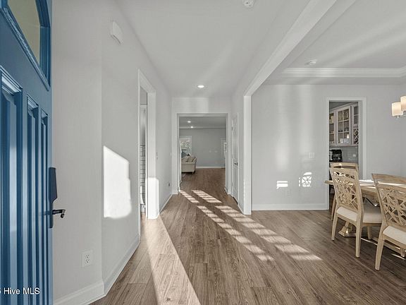 You won't want to miss out on this 4BR, 2.5BA home situated on the Crow Creek Golf Course in Carolina Shores, NC! The highly desirable Vanderbilt floor plan encourages relaxed everyday living and effortless entertaining. The open concept plan offers a large living room, formal dining room, eat-in kitchen, private office, and a luxurious kitchen featuring quartz countertops, a large island, tiled backsplash, walk-in pantry, and coffee bar. The first floor Primary Suite has a tiled shower, dual vanity sinks, and walk-in closet. As you make your way upstairs, there is an additional office space overlooking the living room. Upstairs you will be greeted by a large loft area, 3 additional bedrooms, full bathroom, and access to the upstairs front porch overlooking the amenities that Eagle Run has to offer. Upgrades throughout the home include luxury vinyl plank in all living rooms & bedrooms (no carpet!), plantation shutters, home gym off the garage (negotiable), fenced in backyard, and much more. The screened in back porch and extended concrete/patio area add another area that homeowners will enjoy. Amenities include a pool, 2 pickleball courts, and affordable HOA dues. Schedule your showing today!!