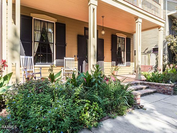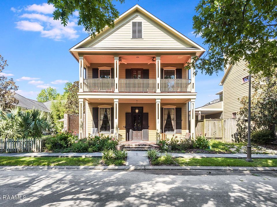 Welcome to this charming two-story traditional home in the highly desirable Village of River Ranch! Perfectly situated across from a beautiful green space park, residents enjoy easy access to walking paths, open areas for recreation, and community gatherings. The location also offers quick access to nearby shops, dining, and everyday conveniences, with Ascension Episcopal School within walking distance. The inviting front elevation features southern traditional architecture with elements of Acadiana Colonial Revival design with a spacious porch and patio that create excellent curb appeal. Inside, the first floor offers a thoughtful layout with brand-new flooring, a comfortable living area, and a large primary suite complete with a generous closet and ensuite bath. The kitchen, dining, and living spaces flow seamlessly, making the home functional and welcoming.Upstairs, you'll find two additional bedrooms and an office space, ideal for remote work or flexible use. Both upstairs bedrooms feature balconies that overlook the park, providing a relaxing outdoor retreat. Beautiful real wood flooring in the bedrooms adds warmth and timeless character to the space.The rear alley provides convenient access, additional privacy, and quick routes to enjoy River Ranch's many community events. There is dedicated parking for a golf cart, making it easy to reach nearby restaurants, boutiques, and entertainment. The outdoor space receives an ideal amount of sunlight, making it perfect for minimal patio gardening or potted seasonal planting and perfect for afternoons hangouts. River Ranch is known for its walkability, thoughtful design, and sense of community, offering a vibrant lifestyle with parks, shops, and dining just steps away. This home blends comfort, location, and charm in one of Lafayette's most sought-after neighborhoods.