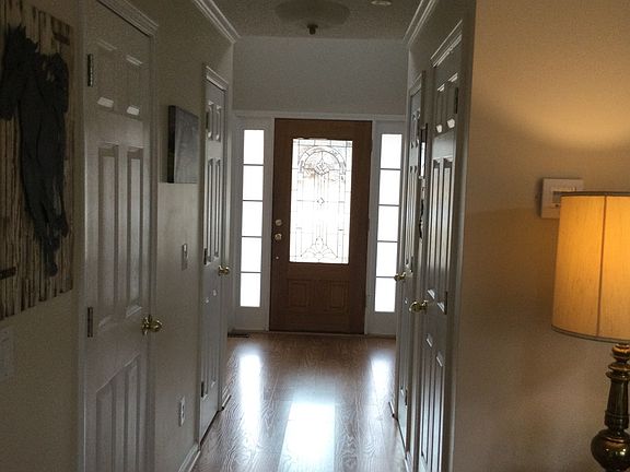 Located in great community with side walks, pool, club house and playground. Cute 3 could be 4 bedroom home. Main level has nice hardwood floors, office, den with wood burning fireplace, eat in kitchen and powder room. Upstairs has 3 Bedrooms , 2 baths . Bonus room could be a 4th bedroom. Lot is 1/2 acre with deck overlooking wooded back yard which backs up to club pool.