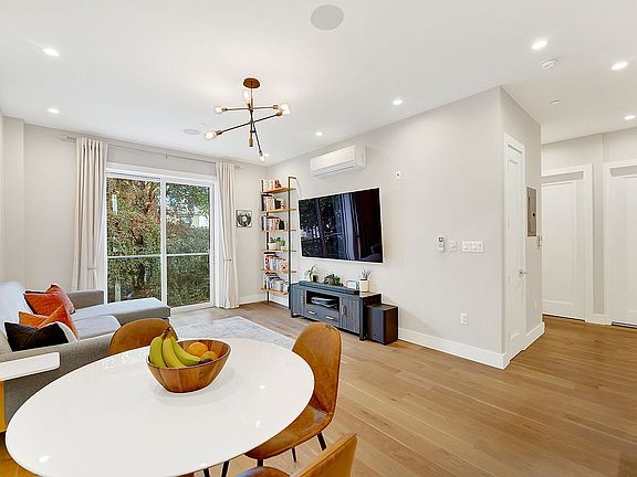 High-end finishes throughout the home reflect quality craftsmanship and attention to detail. Wide-plank white oak flooring, finished custom closets that provide ample storage and effortless organization, and an in-unit washer and dryer enhance daily living. Modern features ensure everyday comfort and convenience, including dimmable recessed lighting, a pre-wired sound system, Apple HomeKit ceiling fans, and coax and ethernet wiring for seamless connectivity to high-speed internet, cable TV, and home networking.