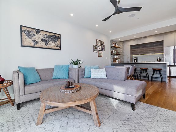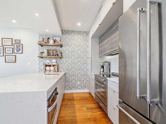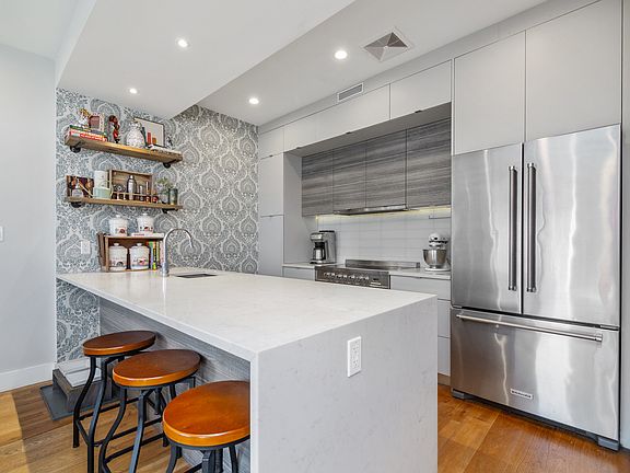 Unwind in this modern, luxurious 2 bedroom, 2 bathroom oasis nestled in the heart of Bushwick. This mint condition gem boasts over 900 sq ft with a flowing layout ideal for the ultimate comfort and with a private balcony! Sunlight cascades through every room in the apartment and illuminates the sleek, modern finishes that define this home. The chef's inspired open large kitchen, is ready to ignite your culinary passions. Outfitted with top of the line stainless steel appliances; Kitchenaid 36' refrigerator, bosch dishwasher, electric verona range with zephyr hood. In addition there is custom matte gray cabinetry with Carrara quartz countertops. Two well-proportioned bedrooms offer private sanctuaries, each with ample closet space for ultimate organization. Luxuriate in the spa-like bathrooms, featuring beautiful tiling, contemporary Duravit fixtures, deep soaking tub and radiant heated flooring that will elevate your daily routine. Additional features; in unit washer/dryer, thru wall heat/air systems, wide plank white oak flooring, recessed lighting, tons of closets, centrally connected blue tooth system and two storage units included. 139 Grove Street is a collection of eight beautifully designed condominium apartments with a common furnished roof deck to enjoy the stunning open city views walk up, bike rack, storage units and with video intercom security system. Beyond your doorstep, Bushwick's vibrant energy thrives. Discover trendy cafes, art galleries, and buzzing nightlife venues, all within easy reach. Enjoy green spaces like Maria Hernandez Park and Bushwick Playground and convenient to the J/M/Z or L trains. 24 hour notice required to show. Available as of August 1st 2025 Fees: $20 per person credit check, 1st month's rent & one month security deposit with leases.