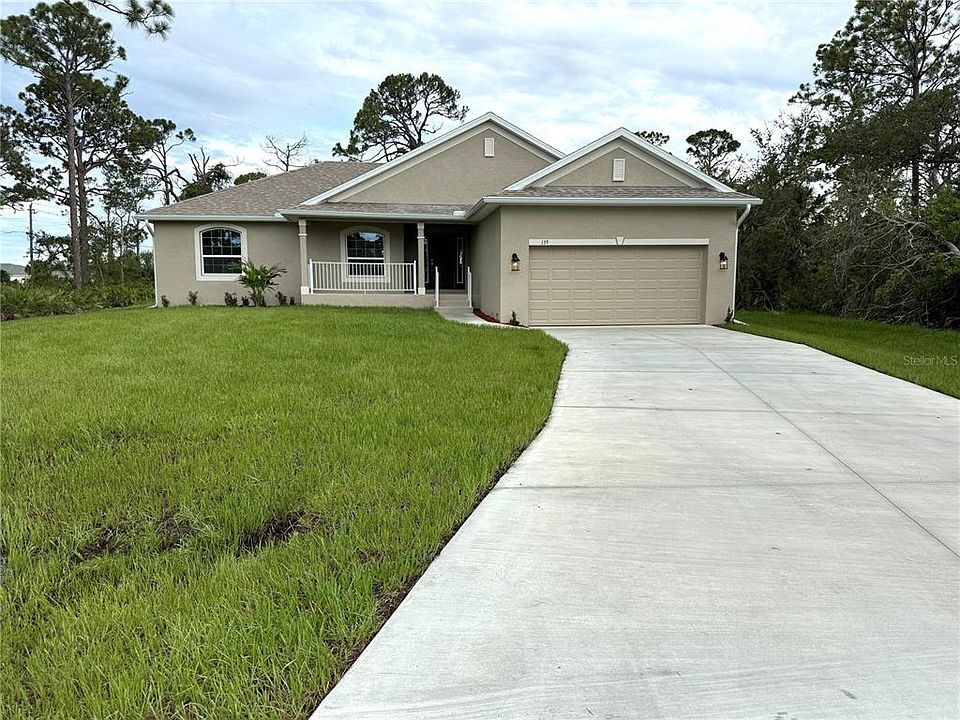 Gorgeous New 4-Bed, 2-Bath Home with Modern Upgrades! Step into your dream beach home with this stunning brand new 4-bedroom, 2-bathroom featuring a bright and airy open floor plan designed for modern living. High ceilings, elegant large baseboards, and tile flooring throughout create a sleek, seamless look from room to room. You'll love the spacious kitchen with granite countertops, upgraded cabinets, and a layout that flows perfectly into the great room—ideal for entertaining or everyday comfort. The primary suite is a true retreat, complete with a step ceiling, a luxurious 5-foot tiled shower, and dual granite vanities. Enjoy Florida living at its best with a pair of French glass doors leading out to your covered lanai, perfect for relaxing or dining outdoors. The home sits on a beautifully landscaped lot with Floritam sod, an irrigation system, and city water access. The “C-Elevation” upgrade adds charming curb appeal with a fenced-in front porch. Wooded area & Green Belt behind the home will add to your enjoyment of nature and provide an extra measure of privacy. Builder incentives available! Most closing costs are covered when using a preferred lender. Prices, features, and availability subject to change. Errors and omissions excepted.