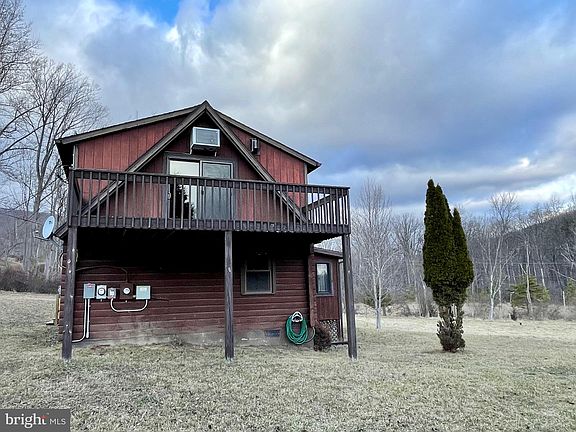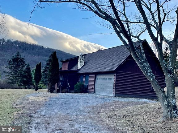 Find your bliss at this adorable cabin you've been waiting for-just minutes from Cacapon State Park! Take in the mountain views from the 4 season enclosed front porch! Dining/kitchen area boasts wood floors with soaring ceilings and propane stove for chilly days that gives way to the open loft/bedroom with private bath and laundry closet. Bonus upper deck off the loft area. One bedroom and bath on the main floor. The living room with large windows and patio door was added to the original main structure along with a double garage with workbench and shelves. House is equipped with solar panels too!!! Situated on 2.15 acres in a community that offers a private lake access to it's owners with beach and dock area. Hit the state park just around the corner for hiking, biking, golf, lakes, restaurant, spa services and more! This location doesn't come along very often so be sure to set your showing asap! Please note that the subdivision is meeting to disallow short term rentals.
