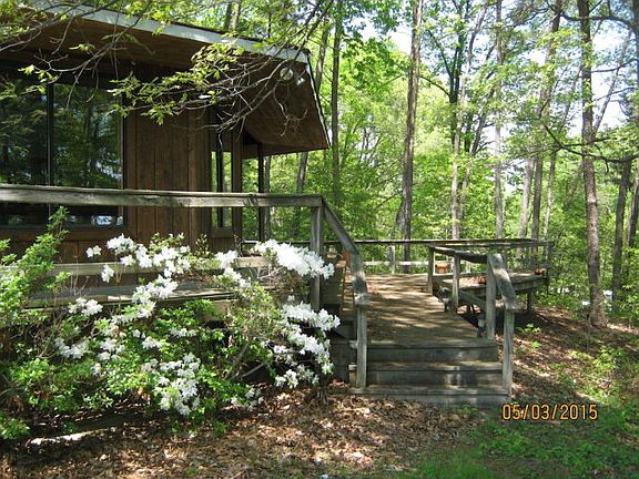 Gracious, large home (almost 2400 square feet) in private setting w/great style. Large great room comprised of kitchen, dining & living room are the heart of this home with an office. Hardwood floors throughout except the tiled baths Each of the 2 sizable bedrooms has their own bath on the non-river side. (May be possible to close in the office for a third bedroom.) Extraordinary two story stone fireplace with clerestory windows for lots of light, decks overlooking creek. Windows and views everywhere, tucked in the woods and overlooking the creek. Decks have recently been redone. Other improvements in the works. Pier will need work. Two and a half acres with an outbuilding that may be upgraded for a multitude of uses perhaps including a guest cottage....it has water and electric. Come and see this home that faces a creek, but essentially has water all around....from the back side you can see the bridge over the Nomini....the river and the creek are very much part of this setting! Property is priced way below assessment. If you come and experience it you will find that this is an unusual and exception property....views, privacy and a wonderful feel to the home.
