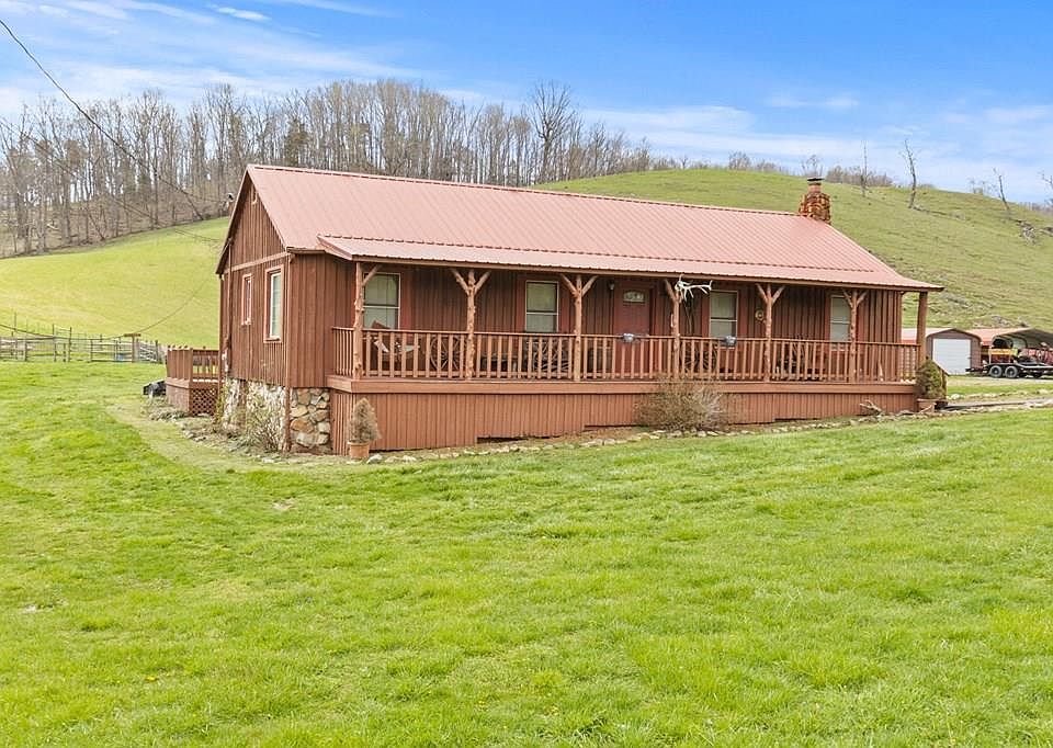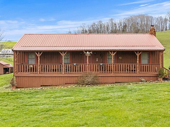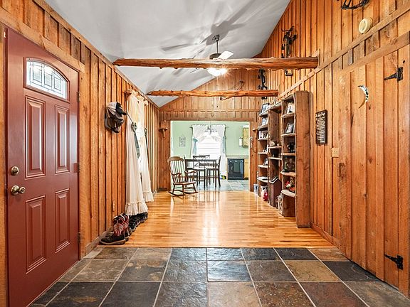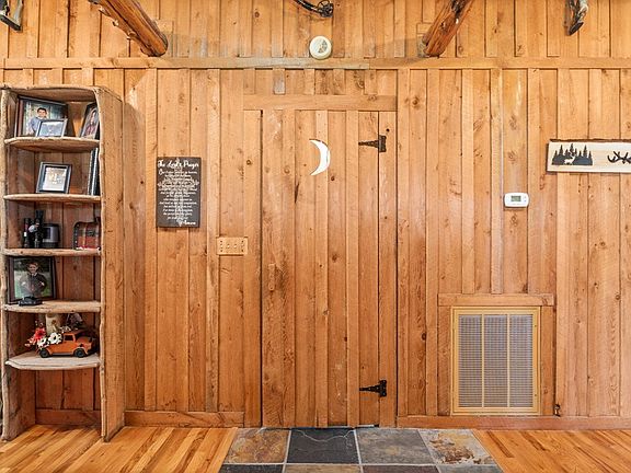 Welcome to your serene retreat nestled on 1.56 acres of pristine land in the beautiful Oaks subdivision! This charming ranch-style cabin home offers a perfect blend of rustic charm and modern comfort. With 3 bedrooms, 1 full bath, and 1 half bath, spread across 1792 sq. ft. of living space, this property invites you to experience the tranquility of country living. As you approach, the exterior greets you with the timeless beauty of hemlock wood siding, lending a warm and inviting ambiance to the surroundings which you can enjoy from the expansive covered front porch. Stepping inside, you'll find the interior walls adorned with the same hemlock siding, imparting a cozy and natural feel throughout the home. The welcoming foyer flows smoothly into the dining area and cozy kitchen which includes a dishwasher, range oven/stove w/ hood and refrigerator. The primary bedroom boasts a vaulted ceiling adorned with skylights that bathe the room in natural light, creating an airy atmosphere.