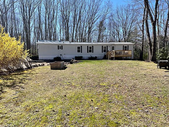 3 Bedroom Manufactured home on 2 acres of land. Set far back from the road, on a charming wooded lot, with a large front and back yard as well. 2 Car detached garage with storage above.