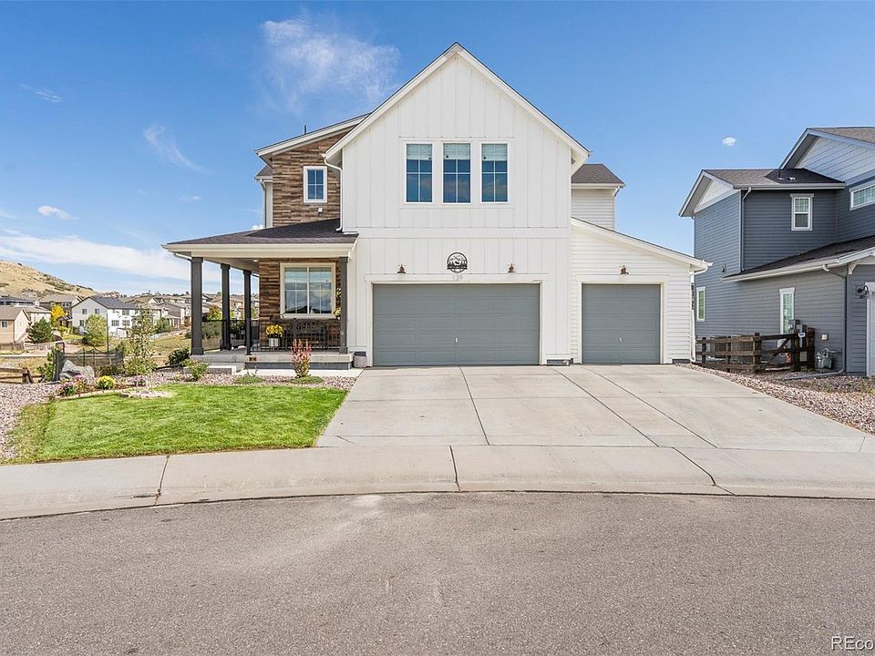 Poised on a premier lot in Castle Rock’s sought-after Vista at Montaine community, this stunning home showcases sweeping views and luxurious indoor-outdoor living. A welcoming covered front porch opens to a bright main-floor office and an inviting living room anchored by a floor-to-ceiling stacked stone fireplace. The gourmet kitchen showcases a center island with a farmhouse sink, a gas range, a sizable pantry and an adjacent dining area framed by large windows. Sliding doors lead to an expansive deck overlooking a pond, putting green and Castle Rock’s iconic star during the holidays. Upstairs, a versatile loft complements the vaulted primary suite with its spa-like bath featuring a soaking tub and walk-in shower. The finished walkout basement extends entertaining with a recreation area, wet bar, and guest bedroom and bath. With upgrades throughout, a three-car epoxy-coated garage, mudroom with built-ins and an electric fence, this residence fuses refined design with everyday functionality.