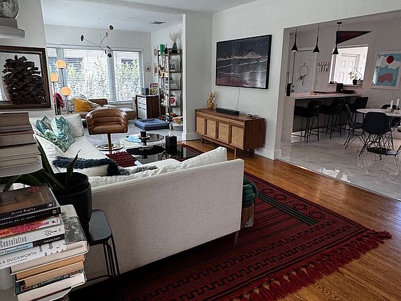 Beautiful renovated single family home right in downtown Miami shores, next door to Peel, Sobremesa, Pura Vida and more. Lovely light filled spacious 2 bed 2 bath +den/dining room/office space, ample closet space, laundry room, garage with room for storage and off street parking. Huge mature coconut palms and fruitful mango tree on the property. Tenant pays utilities & landscaping. First & last month + security deposit required to move in, must pass credit check and income requirements. Pet's allowed per landlord's discretion. Available in January 2026.