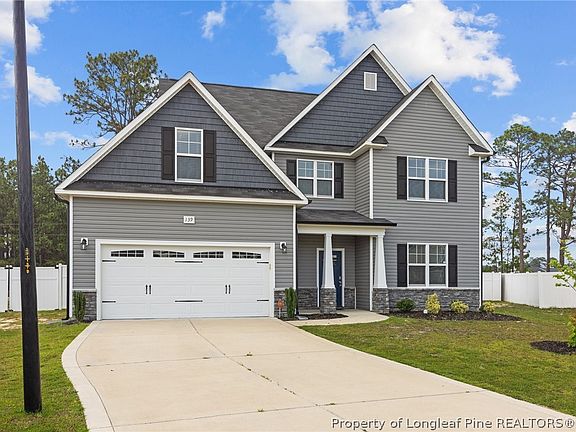 Beautifully maintained 2 Story on a Cul-de-sac in Raeford!! 4 Bedrooms, 2.5 Baths. Welcome Home into your Foyer with Formal Dining to the right boasting Coffered Ceiling & Wainscoting. Open Kitchen has an Island, Built In Desk Area, Granite Counters, Tile Backsplash, Breakfast area, SS Appliances which flows effortlessly into the Family Room with Fireplace & Ceiling Fan. Upstairs you will find all 4 Bedrooms, Laundry Room & 2 Full Baths. The Primary Suite has Trey Ceiling & Ceiling Fan, Double Vanity, Garden Tub, Separate Shower & 2 separate WIC. Your outdoor space includes a Privacy Fenced back yard & Covered Patio Area with extension for Grilling for your Relaxation & Enjoyment! Located conveniently to Ft Liberty, Fayetteville & Raeford with Southern Pines & Pinehurst a short drive down the road offering many Dining & Entertainment venues!! You simply cannot go wrong with this property, so make your appointment today!!