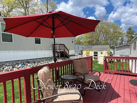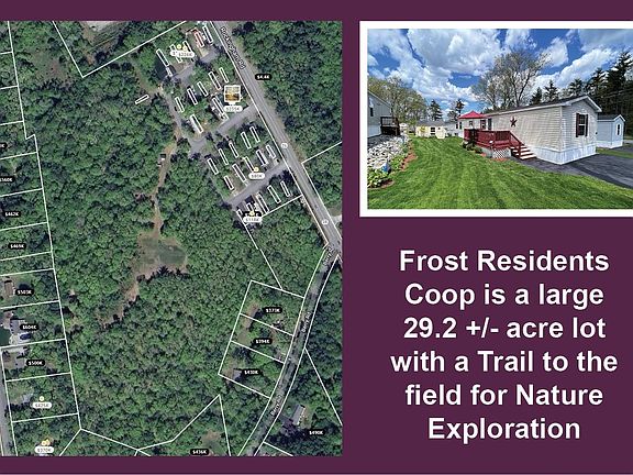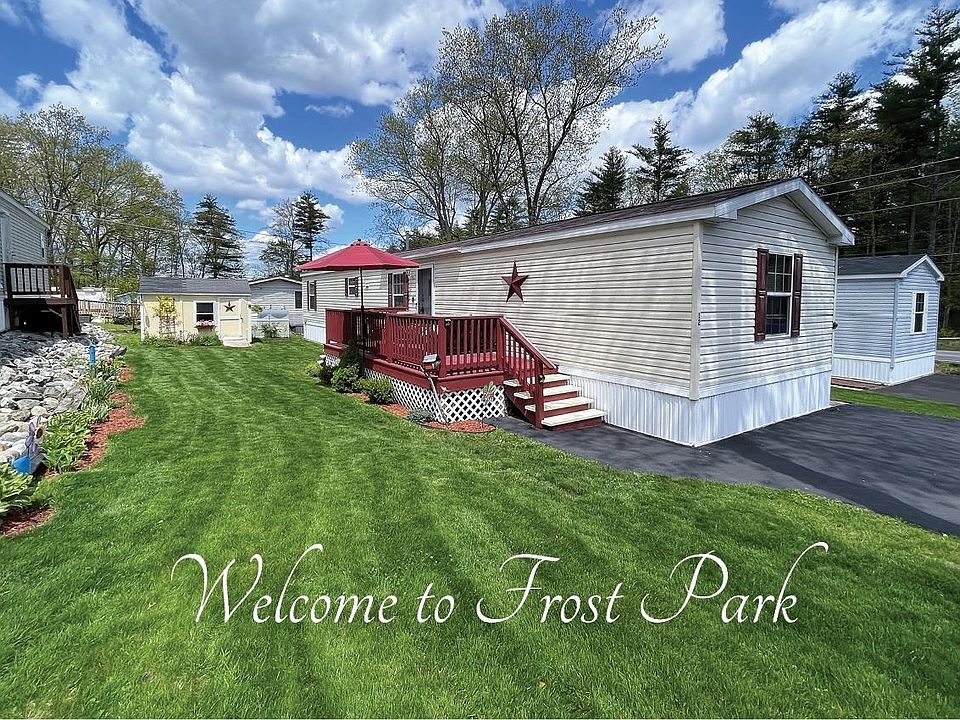 Welcome to Frost Residents Coop which is a large 29.2 +/- acre park w/ a Trail to the field for Nature Exploration. Robert Frost Farm Historic site is conveniently across the street w/ nature trail. This modern 2006 mobile home is MOVE-IN CONDITION. Offering 3 bedrooms, 2 full baths, and a spacious 8x20 deck, it presents a comfortable lifestyle. The living room features a charming custom "Rustic" wall, adding character to the space. Additional SHED w/ ELECTRIC offers 2 storage compartments, providing ample storage solutions. This home offers BEAUTIFUL GARDENS of various flowers, hostas and more for a truly serene yard. BONUS PUBLIC water & sewer, which is a HUGE benefit. Notable UPDATES include recent renovations such as NEW FLOORING throughout, a refrigerator, microwave, CENTRAL AC, furnace, washer, dryer, TV wall mount, & recessed lighting, all installed in 2021. In 2020, mini blinds were added to all bedrooms, while 2019 saw the installation of backsplashes in the kitchen. In 2018, the expansive 8x20 deck was constructed. RV/TRAILER/BOAT PARKING – Owner occupants only (no rentals). Each new owner to purchase a "share" of the park for $11,800 paid at closing directly to the current seller and gets returned when you sell. Subject to Co-op approval - Application includes background, credit check and interview. ** BUYERS & AGENTS conduct Due Diligence to verify all listing information, agents to send buyers attached docs in MLS & review non-public remarks.