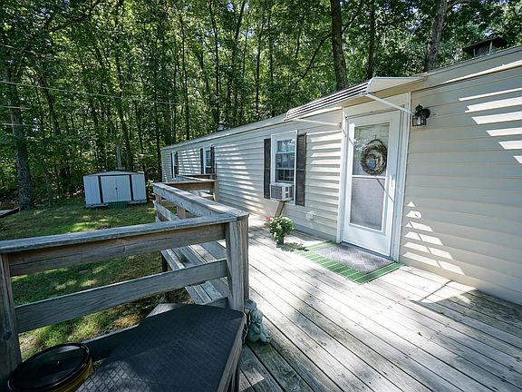 Welcome home to Frost Residents' Cooperative! Lovely, 2 Bedroom, 2 Full Bath mobile home with deck and shed. Off street parking and driveway. Stone fireplace in living room. Fully applianced. Heating system approximately 8 years. Original windows have been replaced. Hot water tank approxomately 5 years. Separate Laundry Room! Meeting house in community. Minutes to Robert Frost Historical Farm! Coop requires owner occupants only; background, credit check and interview required for park approval. Coop requires each new owner to purchase a "share"of the park for $11, 800 - paid at closing direrectly to the current seller; new owner to recoup that share when they sell. Back on market; making repairs. Showings to begin again on 10/8/22.Close to downtown Derry and minutes to highways, shops, restaurants and area amenities. See pet policy in rules