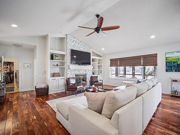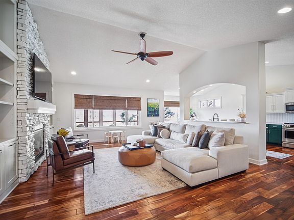 Opening Doors to Your New Beginning!! ON A POND, this 5 BR Ranch will WOW! you as you step in. Tall windows overlooking Screened in Covered Deck and Pond is the view from Great Room. Gas Fireplace with blower. Fall in love with Kitchen cabinet color, warm and inviting. Primary suite w/beautiful view of the pond, Tiled shower in Primary Bath. Half bath off entry, rare to find. Two more nice sized beds on main & Full bath. Host your parties in beautifully finished lower level, wet bar,2 more bedrooms and 3/4 Bath. Combined sf 3362. Fenced Yard, Interior Paint 2002, Ext Paint 2024, Newer Kitchen counter tops, hardware, faucet, 2023, Close to Park, school, Mall.