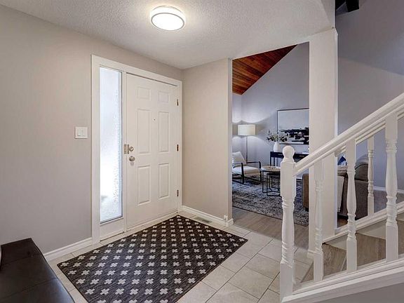 Situated on a quiet Keyhole Crescent. Discover this stunningly renovated walk-out home, a move-in ready with over 3,075 square feet of developed living space. This immaculate two-story residence is designed for both comfort and luxury, offering four spacious bedrooms and 3.5 bathrooms. From the moment you step inside, you'll be greeted by a soothing, neutral palette that highlights the gorgeous laminate flooring and elegant architectural accents. The main floor is a true masterpiece of design. A bright and airy living room, with its vaulted shiplap wood & beam ceiling, and skylit lofted area, invites an abundance of natural light. The kitchen is a chef's delight, boasting ample counter and cabinet space, numerous vinyl windows, and a cozy breakfast nook. For more formal gatherings, the separate dining room area provides the perfect setting for memorable family functions and large dinner parties. Adjacent to the kitchen, the relaxing family room features custom built-in cabinetry and opens onto a large deck with calming, scenic views. A convenient two-piece powder room, a laundry room complete this level. Upstairs, the focus is on relaxation. The primary suite is a private retreat, featuring elegant French doors, a beautifully updated four-piece ensuite bathroom w penny round tile backsplash quartz counters, Air Jett tub and a large walk-in closet. Two more generously sized bedrooms, one with its own walk-in closet, a four-piece main bathroom, and a tranquil lofted den area offer plenty of space for family and guests. The fully developed walk-out basement is an incredible bonus, providing a fourth bedroom, a three-piece bathroom, a bonus room, and a spacious recreation room. The walk-out grants direct access to your low-maintenance, landscaped backyard, which backs onto a serene walking path, perfect for an active lifestyle. Oversized, heated, double attached garage w mezzanine and separate entrance to the rear yard. Nestled on a quiet cul-de-sac, this home is surrounded by parks, pathways, schools, and playgrounds, creating the ideal environment for a family. Storage shed is included. Convenience is at your fingertips, with Beddington Towne Centre and Shopping Centre just moments away. With parking for up to five vehicles and an array of exquisite features, this beautifully designed and meticulously maintained home is ready for you to create new memories. Don't miss your chance to live in luxury and comfort—book your showing today!