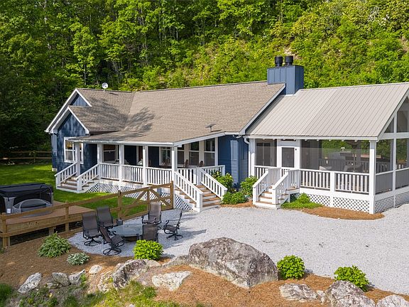 Charming Mountain Retreat with Stunning Views on +/- 4.73 Unrestricted Acres. Escape to this beautifully maintained, furnished, single-level mountain home, perfectly perched at approximately 3,850 feet of elevation. Offering breathtaking short- and long-range mountain views, providing the ideal blend of tranquility and convenience. As you arrive, you’ll immediately notice the abundance of parking—perfect for hosting family and friends. Step out of your car, take a deep breath, and feel the day’s stresses melt away as you take in the crisp mountain air and sweeping views. For pet owners, the level, grassy, fenced-in backyard is a dream, providing a safe space for your dogs to run and play. A gentle ramp leading to the front porch makes access easy, especially for senior pets. Inside, the bright and airy open floor plan seamlessly connects the kitchen, dining, and living areas, all flooded with natural light from the many windows throughout. With all bedrooms conveniently located on the main level, this home offers effortless accessibility for everyone. The oversized primary suite features a spacious ensuite bath and generous closet, while two additional guest bedrooms provide ample space and share a well-appointed bath. Outdoor living is a highlight of this home, with 3 distinct entertaining areas. Enjoy your morning coffee on the covered front porch while soaking in the views, unwind on the private back porch, or gather with family and friends in the stunning screened-in porch—complete with a wood-burning fireplace, TV, and plenty of space for lounging and dining. Whether you’re hosting a game night, savoring a delicious meal, or simply relaxing by the fire, this space is designed for making memories. The front yard offers even more possibilities, whether you want to let the dogs run, start a garden, set up your favorite yard games, or take a quick soak in the hot tub. Additionally, a combined storage shed provides a versatile indoor space, ideal for a workshop, artist studio, or creative retreat, complete with a mini-split system and wood-burning stove. Located just minutes from Lake Glenville, Signal Ridge Marina, Happs Restaurant, and downtown Cashiers, this mountain retreat offers both seclusion and convenience. Sellers also own a private boat slip on lake glenville that could be purchased for an additional fee. Dock slip is within +/- 4 minutes of house location. Don’t miss the opportunity to make this incredible home your family’s next getaway!