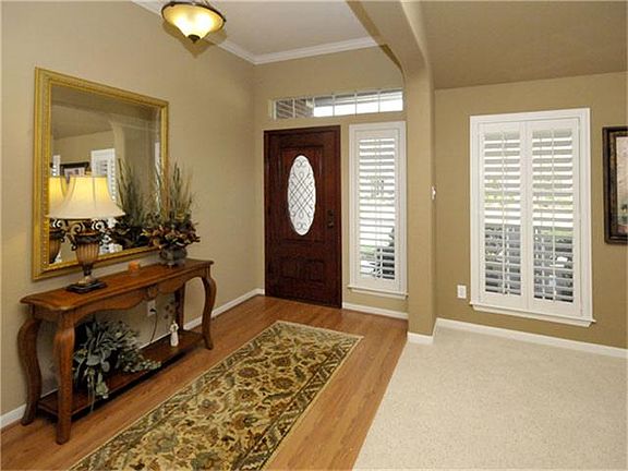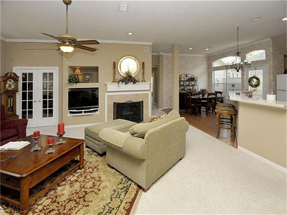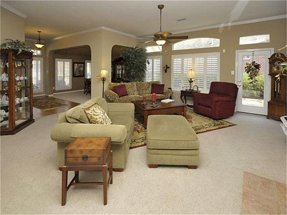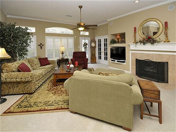 FANTASTIC Ryland 3 bedroom, 2 bath home, open floor plan, exuberant color palette! Formal dining, study. Stunning Plantation shutters, spacious kitchen with CORIAN countertops, gas cooktop, breakfast bar, recessed lighting. Gas log fireplace, spacious living area. Master bath features double sinks, a Jacuzzi tub & separate shower, refrigerator included. This is a first class property! Cute front porch and back patio area. READY FOR MOVE IN!