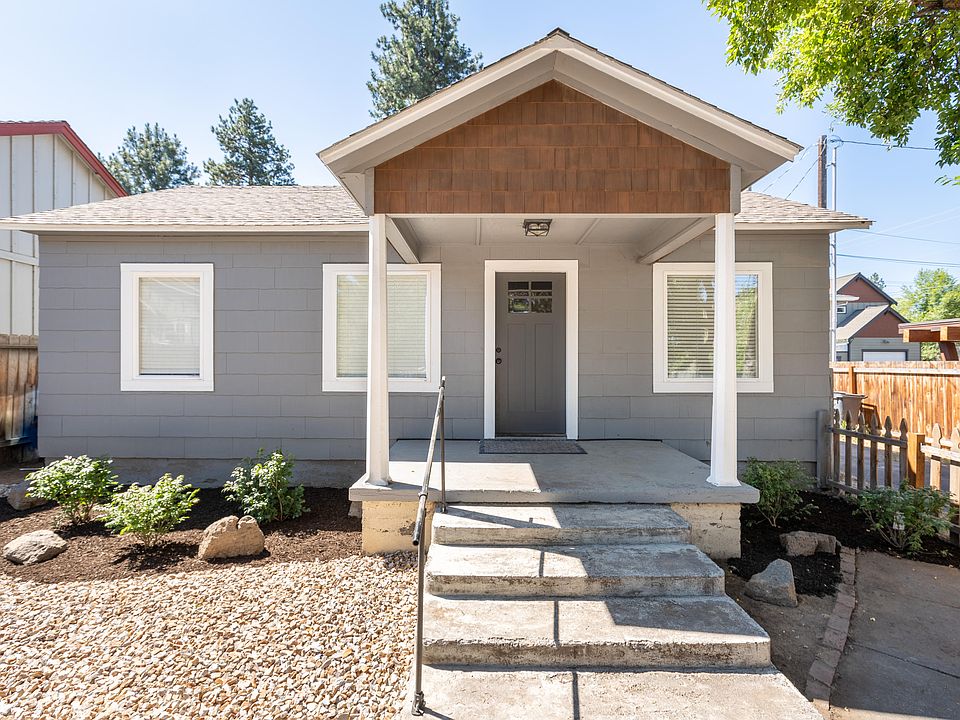 Amazing opportunity awaits the new owner of this renovated 1940's Cottage that is STR ELIGIBLE and located in Bend's Opportunity Zone! Many possibilities with RM zoning and room to add another home or garage with ADU make this a prime investment. Complete renovation done in 2018. Fenced yard, big shade trees and ample off-street parking. Peek-A-Boo view of Mt. Bachelor from the kitchen window. Close to Downtown Bend and just a few blocks to the Deschutes River, Les Schwab Amphitheater and the Old Mill District restaurants, sips and shops! *Square footage includes a 575 SF partially finished basement.
