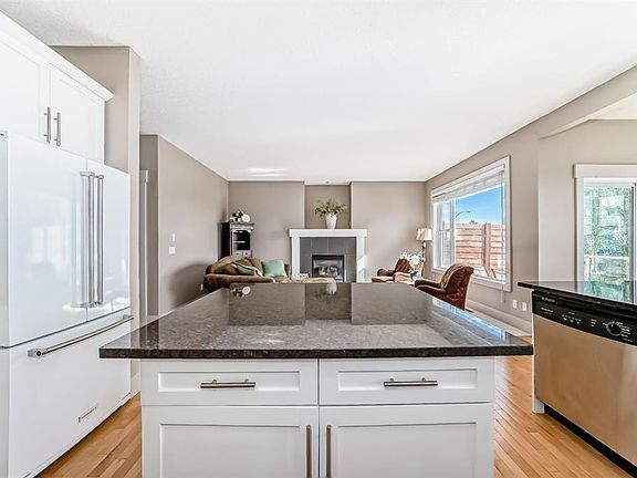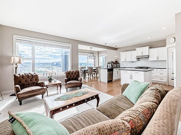 Elegant Family Home in Desirable Springbank Hill" Discover this beautifully appointed residence in the prestigious Summit of Montreux community, offering an ideal blend of luxury, comfort, and functionality. The welcoming main floor features an open-concept design with a gourmet kitchen boasting granite countertops, stainless steel appliances, a spacious island, and ample cabinetry for storage. Sunlit living areas with gleaming hardwood floors and large windows flow effortlessly to a private home office—perfect for today’s work-from-home lifestyle. A cozy dining area and a gas fireplace in the living room create an inviting atmosphere for family gatherings. Upstairs, the luxurious primary suite impresses with a walk-in closet and a spa-like ensuite featuring dual vanities, a soaker tub, and a separate glass-enclosed shower. Two additional generously sized bedrooms share a well-appointed bathroom, while a cozy family room with balcony access provides the perfect retreat for relaxation. The fully developed lower level offers versatile space with two additional bedrooms, a full bathroom, and a kitchenette—ideal for guests, teens, or a home gym. Practical features include a double attached garage with built-in storage, a professionally landscaped yard, and a prime location near top-rated schools, upscale shopping, scenic parks, and easy access to major roadways. This home combines modern elegance with everyday convenience, making it perfect for growing families or those who love to entertain. Experience refined living in Springbank Hill—schedule your private showing today and make this stunning property your new home!