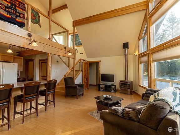 Come make this 1900 sq ft home your destination home. Randle WA is one of the most desirable mountain escapes. Fishing, hunting, hiking, and skiing right at your fingertips. Kiona Park Estates gives you access to a community airfield. This custom home has an exterior of log cut cedar siding with custom artistic doors throughout. Interior is designed with PNW living in mind: Silstone countertops, Gas stove, jetted tub in primary bath, bamboo flooring and tile flooring, mini-split with 3 heads, home faces South with large windows giving loads of natural lighting and views. Exterior: 48x48 shop room for 2 planes, propane Generac generator 22kw, 500gal propane tank, 3 bd septic, 20gpm well, outbuildings, fenced backyard, & garden area.