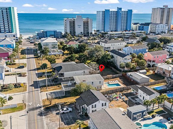 Nice Ocean view from this beautiful 4 bedroom 3 bath home just steps to sand and surf! NEW HEATED SALT PRIVATE POOL with HUGE backyard provides hours of fun with room for yard games to play! Relax in the bright sunroom with full bath right off pool area. Home sports too many upgrades to name with new flooring, kitchen, etc.! Enjoy warm summer days on the OVERSIZE deck that was completely redone in 2021. 2 bedrooms upstairs, 2 bedrooms downstairs plus 2 separate kitchens. The living room was remodeled in 2022 and the bedrooms were remodeled in 2024. This home has endless possibilities perfect for a vacation home, rental, or even your personal home steps from the beach! Park with ease on double pour drive with room for many vehicles to park cars, boats, etc. Large grill patio allows entertainment while the chef cooks! Enjoy a walk or golf cart ride to the pier to fish or listen to the bands while grabbing a bite to eat/drink, near by restaurants, walk to convenience store, entertainment and more!
