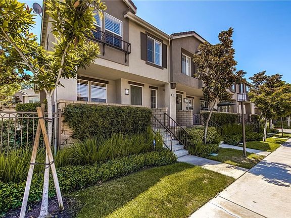 Desirable Berkeley Townhome located near the Birch Street Promenade. Enjoy this end unit with plenty of windows to allow for natural lighting. Built in 2002 with 1,425 of living space, two Bedrooms, a spacious loft and is move in ready! Step through your front door and you will be greeted with an open floor plan with recessed lighting, plantation shutters and Pergo hardwood flooring. You can relax by the cozy tiled fireplace in your living room while chatting with your guests in the dining area. You won't lack storage in this kitchen with a pantry, a kitchen island with storage and an additional seating area. Master bedroom suite features a walk in closet with overhead fan. Master bathroom has dual sinks and tub with overhead shower. Convenient 2 car attached garage with roll up doors. Property is located by the community playground, swimming pool and guest parking. Located in the award winning Brea Olinda High School district and is walking distance to entertainment, shopping and transportation. Your home search is now over!