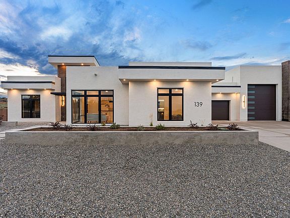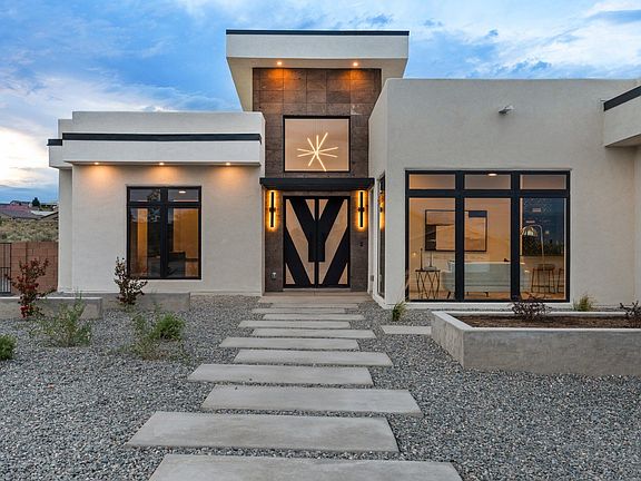 Located in central Rio Rancho, situated on expansive 1/2 acre, lies this one of a kind NEW Contemporary Estate. Classic design that redefines luxury living. The chef's kitchen features Cafe appliances, top quality finishes, and matte Cosentino countertops. This unique floor plan offers a space for everyone. Large primary suite is private and complemented by two large closets and a serene bathroom setting with double vanity, separate shower and soaking tub. The living area flows from one room to the next and seamlessly into an entertainer's dream for outdoor living. This open-concept floor plan offers every amenity with an array of richly appointed features and materials. Attached on front of home is a gorgeous one bedroom guest suite with a separate kitchen / living space you have to see