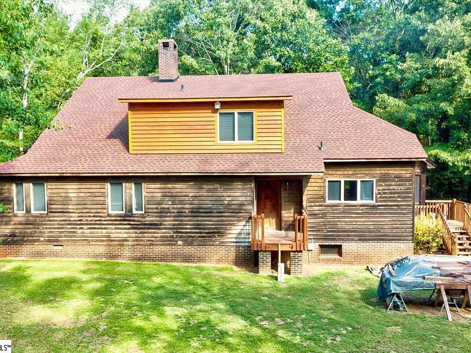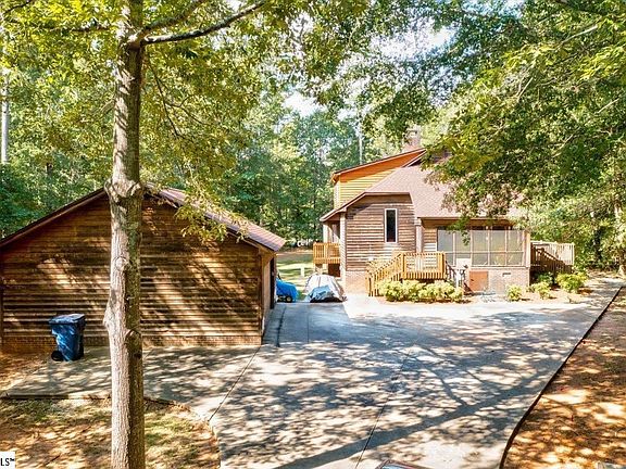 Enjoy your private 5.1 ACRE oasis just 14 miles/25 mins to downtown Greenville and just 8 miles/14 mins to all of the major shopping on Harrison Bridge Rd in Simpsonville. This 3 bedroom, 2 bathroom house has a unique, open floor plan. The long driveway leads to the house that sits back from the road for privacy. Use the screen porch and deck to enjoy the scenic views. The kitchen, dining room, and living room are laid out with an open concept that gives a focal point on the beautiful wood burning, double sided, stone fireplace. The vaulted ceilings bring in ample natural light. The bonus/study/office room is the room using the other side of the fireplace and boasts a wall of built-ins. There is also a flex space at the top of the stairs currently used as an office but could be great for a reading nook, exercise bike, etc. The current owners use one of the bedrooms on the second floor as the master but the bedroom on the main floor can also be used as the master. There is a catwalk from the second floor looking over the main living space. Enjoy the ample storage space such as the 2-car garage the workshop (with attic space), the basement, and the attic space in the home. There are so many possibilities with this property and the 5.1 acres it offers. Put your touch on it and make it yours!
