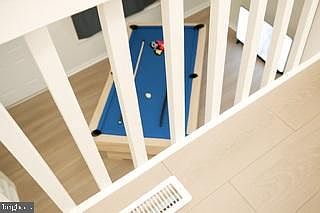 Wooden pool tableUpper-floor laundry for convenienceFirst-floor storage closet