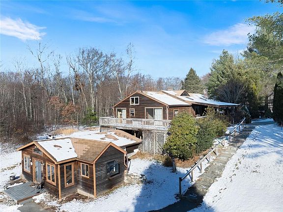Nestled on a dead end street with over 3.2-acres, this meticulously crafted, one-owner ranch style home with a legal in-law cottage offers the perfect balance of privacy, space, and potential. This property boasts unique features that set it apart and make it a rare find. The main home, featuring an open floor plan, 2 spacious bedrooms and 1 full bath, offers endless possibilities with room for expansion. Step inside and you'll be greeted by true craftsmanship, highlighted by stunning custom woodwork and gorgeous hardwood floors throughout. Cathedral ceilings and a cozy wood-burning fireplace create a warm and inviting atmosphere. The home’s large wraparound porch provides incredible views of the serene grounds, making it the perfect spot to relax and take in nature’s beauty. The separate in-law cottage is a charming 1 bed, 1 bath unit with its own private living space and breathtaking views of the picturesque land. The real highlight of this property is the land itself. Wander the property’s handmade bridges and pathways that wind over and around tranquil rivers, explore the private hiking trails, or unwind on the expansive trex deck, ready for your future pool. The property also includes 2 sheds, offering ample space for storage or a workshop. Beyond the private oasis, the property includes full access to Waterman Lake’s private beach, association hall, and marina. This property is a must-see to truly appreciate all it has to offer.