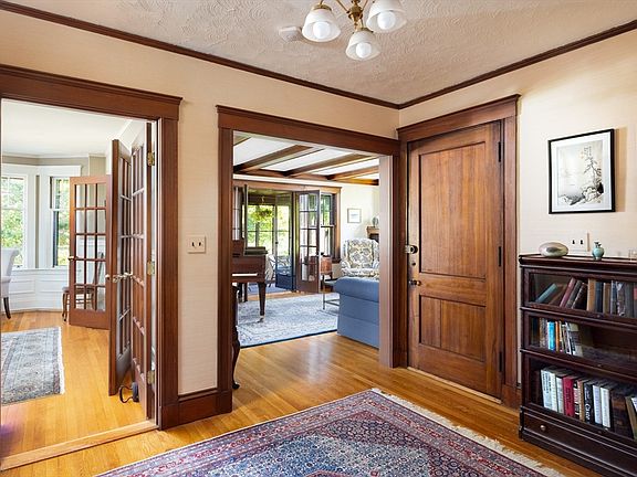 Situated within the heart of Washington Square is a beautifully appointed three bedroom upper duplex. The entry level consists of a welcoming foyer that transitions nicely to the living room and a large three season porch. The eat-in kitchen features stainless appliances, stone counters, gas cooking, and is positioned off the front-facing dining room. A powder room and fireplace complete the first floor. The upstairs bedroom level offers a generous primary bedroom that includes custom built ins, plenty of storage, and access to a private study. Two spacious bedrooms both with large closets, a full bath, laundry, and a storage room complete the upper level. Additional features include four light-filled exposures, tall ceilings, central HVAC, hardwood floors, recessed lighting, basement storage, and a communal back patio and yard. One garage parking space is included. Come experience something very special!